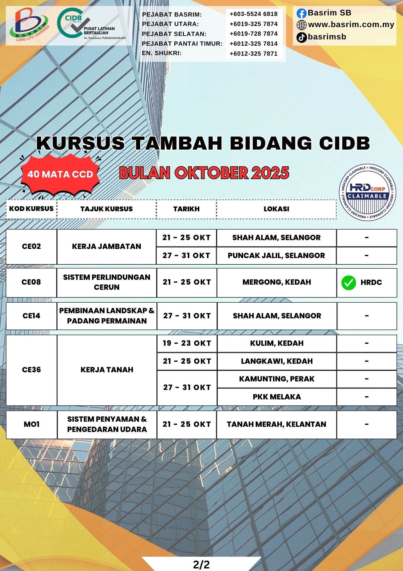 Nak naik taraf lesen CIDB & tambah 40 Mata CCD?